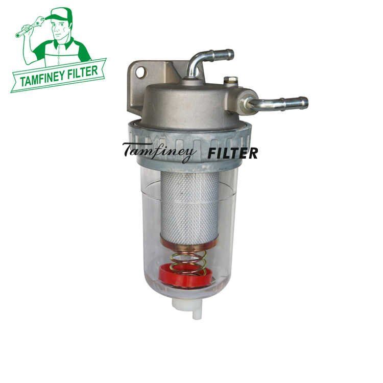 Fuel water separator filter uses a folded corrugated paper element to turn the water particles into sufficiently large droplets that will fall into a water cup at the bottom of the filter by gravity.